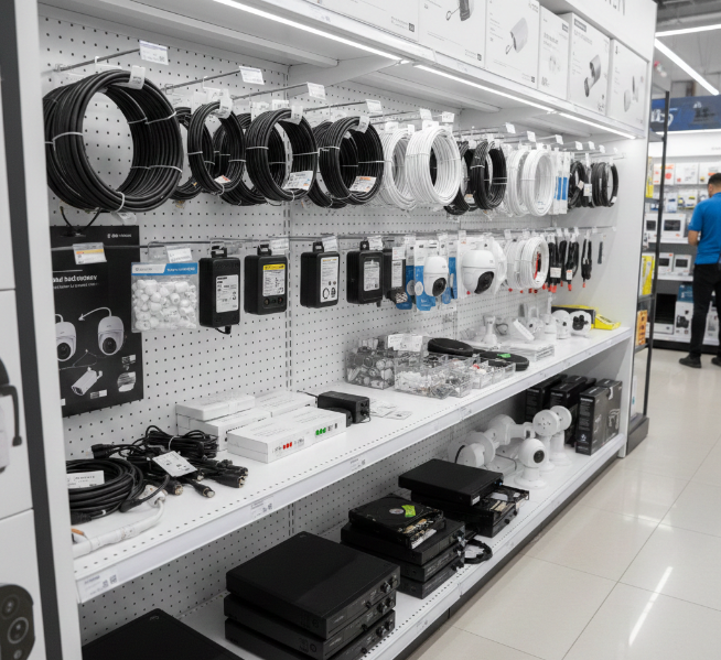 Complete your security setup with essential tools like cables, power supplies, connectors, mounts, and DVR/NVR storage solutions.